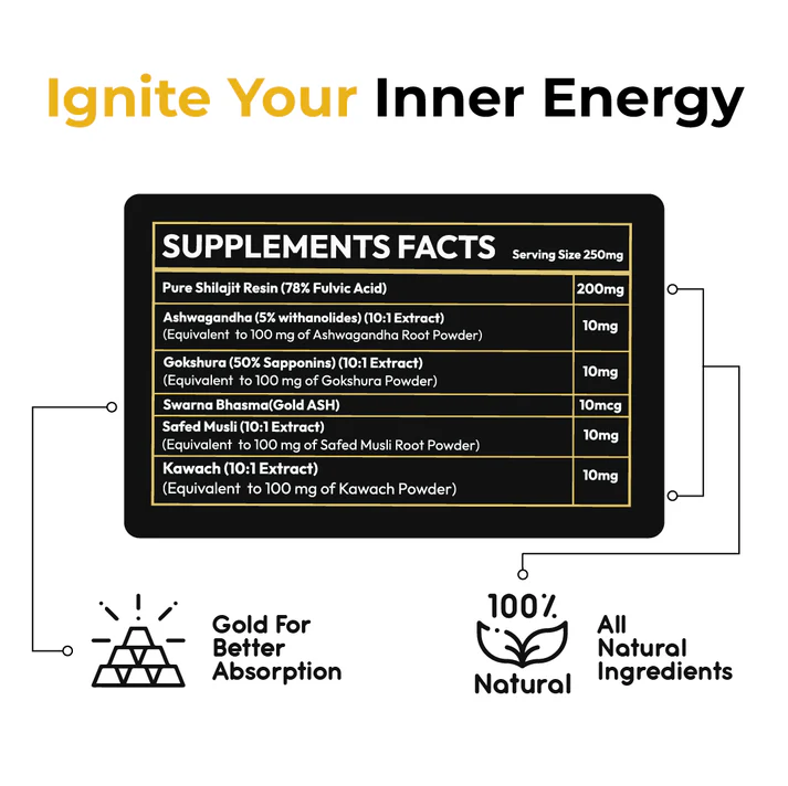 Serving Size: 250 mg Pure Shilajit Resin (78% Fulvic
