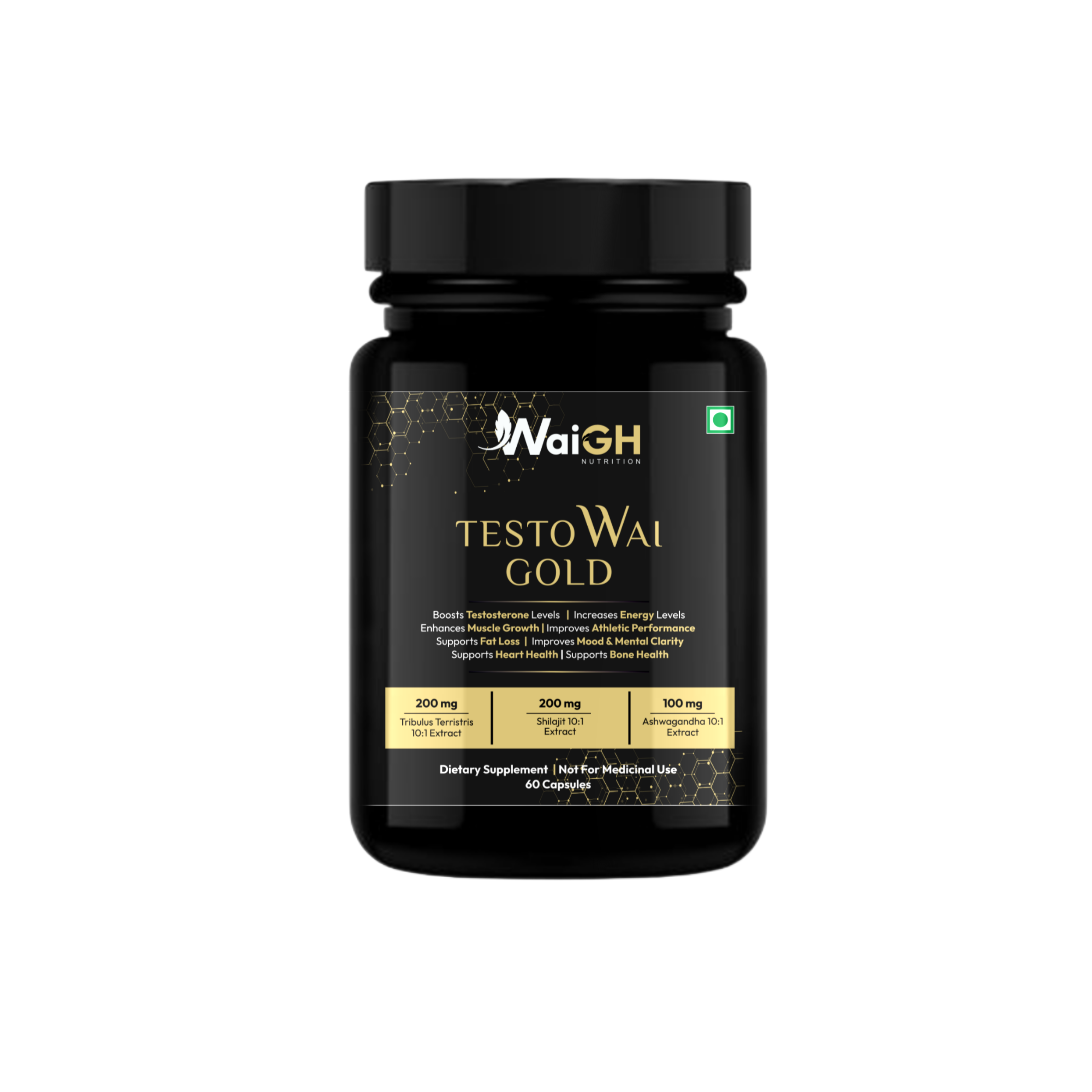 TestoWai Gold- A Natural Testa Booster | Testa Booster Ayurvedic Herbs for Daily Strength | Shilajit, Safed Musli For Energy Stamina & Muscle Strength Ashwaganda 60 Capsule